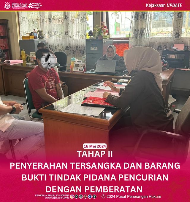 Kamis, 16 Mei 2024 telah dilaksanakan Tahap II Penyerahan tersangka dan barang bukti Tindak Pidana Pencurian dengan Pemberatan kepada JPU…